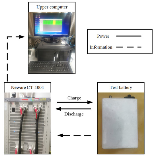 In order to verify the accuracy of the battery peak power estimation method proposed in this paper, a series of battery experiments were designed for experimental verification in this chapter. The experimental platform used for the verification is shown in Figure 6. The high-performance battery testing system Neware CT-4004 5 V 200 A can charge and discharge batteries according to pre-set steps, voltage, and current. The device has a voltage detection range of 0.025–5 V, a sampling accuracy of ±0.05%, a current setting range of 0–200 A, and an accuracy of ±0.05%.