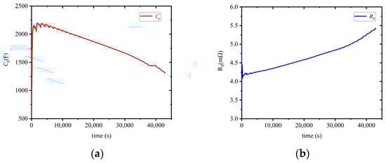Parameter identification results. (a) Polarization capacitance Cp. (b) Ohmic internal resistance R0.