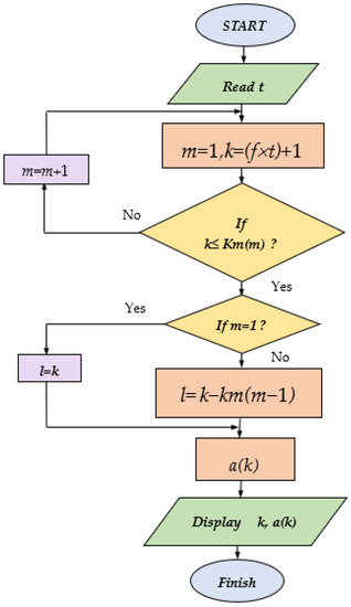 It is observed that for calculating , and , it is required that we have completed one period of signal monitoring, and then it is necessary to perform a high volume of calculating for , and . The reason for this is because for each variable, it is necessary to perform sum operations and multiple operations, and also, the number of variables is . In total, operations of multiplication and addition should be performed. A method is presented here that divides these calculations among samplings. The method of performing the work is as follows: if the period we calculate the harmonics is the kth period, we can write [34]: