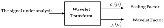 The sampled signal is analyzed via the wavelet transform into the wavelet factor of the first level () and the scale factor of the first level ().