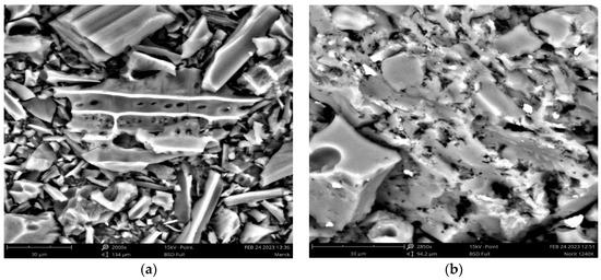 In Figure 1c, an MCPA film covers the ACs surfaces and hinders their adsorption activity due to the blockage of the pores, even though it is possible to see that the cavities were not completely blocked. The thermal treatment allows the desorption of MCPA from the ACs’ surfaces, as shown in Figure 1d.