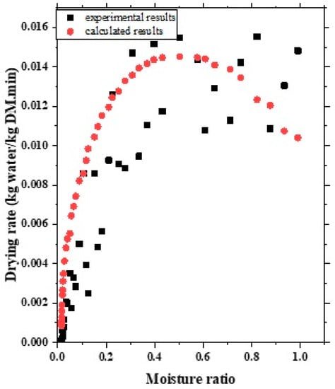 and are, respectively, the dimensionless drying rate and the dimensionless moisture content. Figure 10 provides experimental drying results, which are plotted to represent with a coefficient of determination R2 = 0.889.