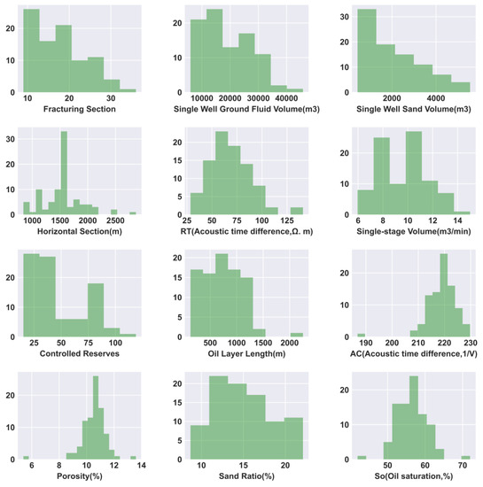 With the widespread application of hydraulic fracturing in unconventional oil and gas reservoirs, it has become possible to obtain a large amount of geological parameters, fracturing engineering parameters, development parameters, and productivity parameters [7]. The application of machine learning-based unconventional hydraulic fracturing horizontal well productivity main control factor analysis, the productivity prediction model, and fracturing optimization model have been increasingly used [8].