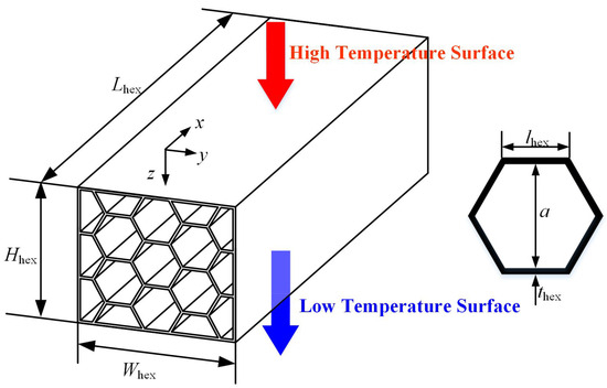 A single-cycle honeycomb calculation model is constructed along the y-axis for a specific cross-section in the x-axis direction to analyze the thermal resistance of the honeycomb heat sink, as shown in
