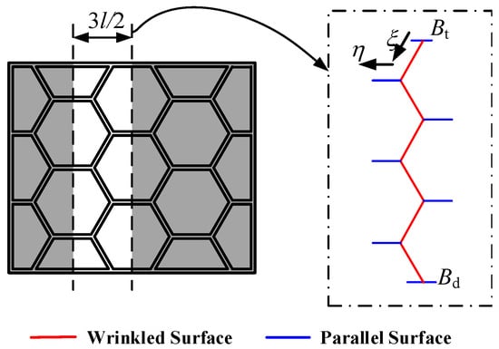 The surface parallel to the x–y plane is called a parallel surface, and the internal honeycomb cell surface is called a wrinkled surface;