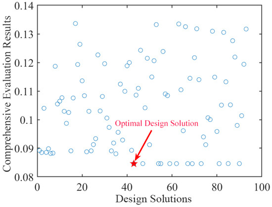Finally, the comprehensive evaluation results of each design solution in the Pareto front set can be obtained as seen in