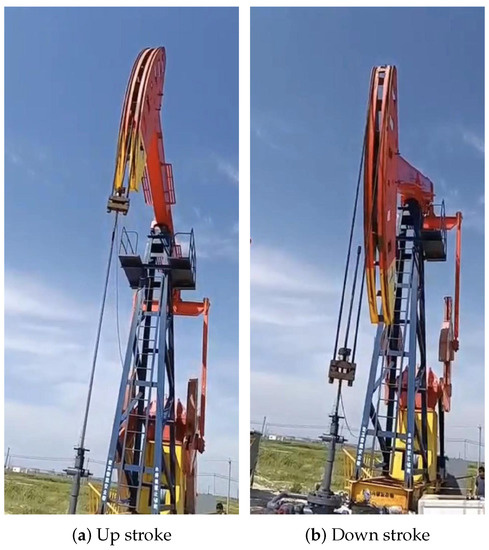 The pumping unit is driven by a motor, and through the reducer transmission system and the execution system, the rod and the pump plunger are driven to move up and down before, finally, the crude oil is lifted from the well to the surface. The operation of the pumping unit is shown in Figure 2.