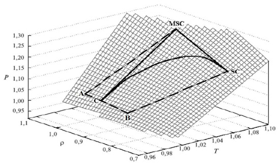 The area of thermodynamic parameters that is necessary to exclude from the area of search for carrying out the experiment is specified in Figure 3 (solid lines). This area is limited by curves C-SC—the line of local minima of stability, C-MSC—the line of maxima of fluctuations, and line SC-MSC—the line of a supercritical isotherm [129], where C is the critical point, SC is the super-critical point, and MSC is the point of the maximum of fluctuations on the supercritical diagram.