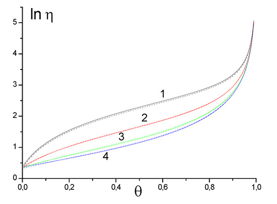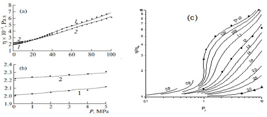 - Egorov, B.V.; Komarov, V.N.; Markachev, Y.E.; Tovbin, Y.K. Concentration dependence of viscosity under conditions of its clustering. Russ. J. Phys. Chem. A 2000, 74, 778–783. [Google Scholar]