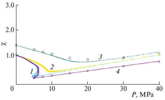 - Krichevskii, I.R. Phase Equilibria at High Pressures; Goskhimizdat: Moscow, Russia, 1963. [Google Scholar]