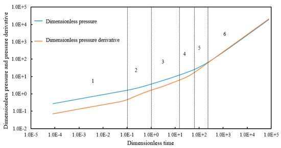 - Based on the dimensionless pressure and pressure derivative curve, the flow of vertical well volume fracturing wells in tight oil reservoirs is divided into six stages: main fractures, linear network flow in the ESRV region, matrix fracture channeling flow in the ESRV region, linear flow in the ESRV region, boundary flow in the ESRV region, linear flow in the unmodified region, and reservoir boundary influence.