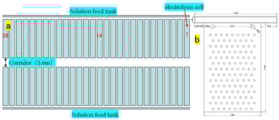 (a) Schematic Diagram of Zn–Electrowinning Electrolysis cell Arrangement and Sampling Positions in the Enterprise. (b) Schematic Diagram of mm-XRF Sampling Positions.