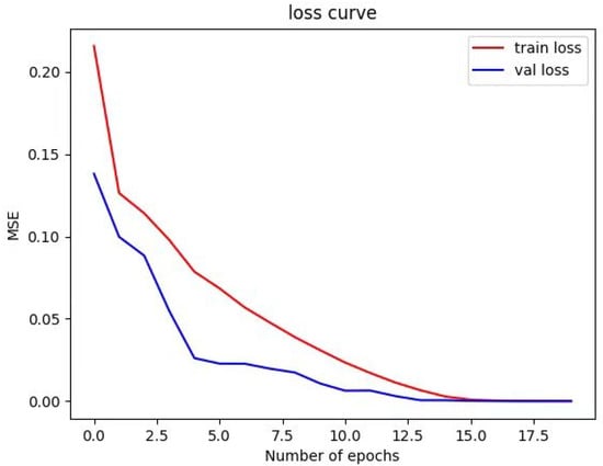 Figure 4 presents the training error and testing error of the TA-LSTM model. The model proposed in this paper predicts the fouling thickness of aircraft heat exchangers after deep learning in the test set. The error curves, depicted in the figure, show that the training error curve (red curve) consistently surpasses the testing error curve (blue curve), indicating a significant improvement in the model’s prediction accuracy after deep learning from the test set. Moreover, as the number of iterations increases, both the training error curve and the test error curve demonstrate a substantial reduction, eventually converging to a thickness close to the true value. This convergence point satisfies the requirements of engineering practice.