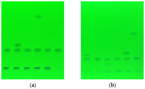 Methanol, chloroform, acetone, toluene, and other organic solvents of an analytical grade were purchased from Merck (Darmstadt, Germany). A Densitometer TLC Scanner 3 with Cat4 software (CAMAG, Muttenz, Switzerland), applicator Linomat V (CAMAG, Switzerland), and analytical balance XA 52/Y (Radwag, Radom, Poland) were used. Chromatographic plates HPTLC Silica gel 60F254 (No. 1.05548) were purchased from Merck (Darmstadt, Germany).