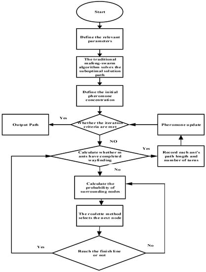 The improved ACO algorithm mainly improves the initial pheromone concentration, the increase in pheromone concentration and the volatility factor on the basis of the traditional ACO algorithm, so as to improve the execution efficiency of the algorithm. The flow of the improved ACO algorithm is shown in Figure 4.