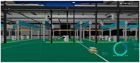 In order to verify the effectiveness and feasibility of the proposed improved ACO algorithm, this section performs a simulation to verify the improved algorithm. The algorithm runs on Windows 10 (64-bit), Core i5-10210U CPU 3.5 GHz; 8 GB of memory on MATLAB software for simulation comparison. In this experimental simulation, the relevant parameters in the path planning algorithm model are set as shown in Table 2, all the time units in the simulation parameters and results are seconds, and the simulation start time is set to 0 s. The digital workshop model obtains the running status of AGV equipment in the actual workshop through data communication and other means, and displays it in the interface in real time, as shown in Figure 5.