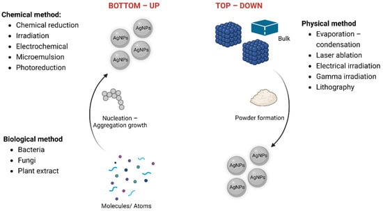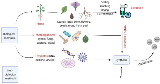 - Mustapha, T.; Misni, N.; Ithnin, N.R.; Daskum, A.M.; Unyah, N.Z. A Review on Plants and Microorganisms Mediated Synthesis of Silver Nanoparticles, Role of Plants Metabolites and Applications. Int. J. Environ. Res. Public Health 2022, 19, 674. [Google Scholar] [CrossRef]