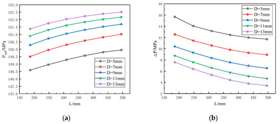 The impact of L changes on injection characteristics. (a) Average rail pressure; (b) average rail pressure fluctuations.