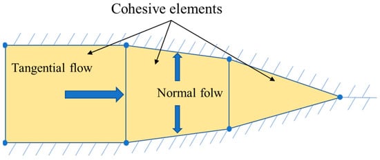 Assuming that the fracturing fluid is an incompressible Newtonian fluid, the fluid flow in the cohesive element can be divided into tangential flow and normal flow.