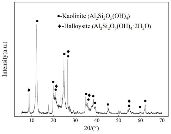 In Figure 1, it can be seen that characteristic peaks were clear and sharp, with its primary mineral phases being high-purity kaolinite (Al2Si2O5(OH)4) and halloysite (Al2Si2O5(OH)4·2H2O).