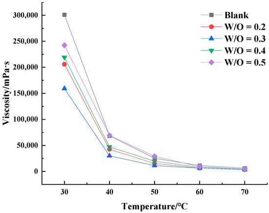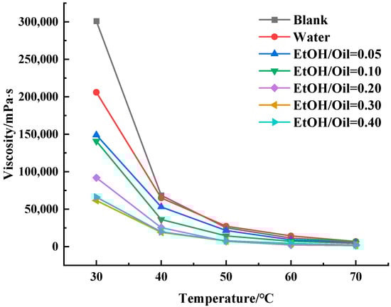 Effect of different reaction temperatures on the viscosity of oil samples.