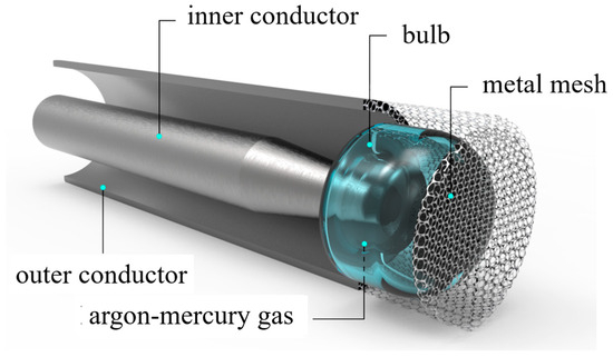 The coaxial structure has the advantage of compactness and transmission of high-frequency electromagnetic waves, so this article uses this structure for the design of the microwave-driven UV lamp. Figure 1 shows the structural schematic of the lamp.