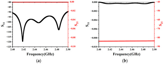 Comparison of S11 and S21: (a) without metal mesh (b) with metal mesh.