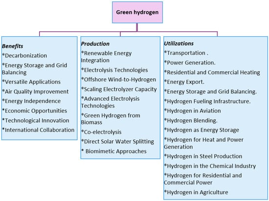 In broad terms, harnessing green hydrogen as a clean fuel presents numerous advantages. However, substantial efforts are required to enhance its production, storage, transportation, and utilization technologies. Additionally, the cost of production and the development of infrastructure should be considered to fully capitalize on its benefits. Nevertheless, green hydrogen is widely regarded as a sustainable and clean solution for meeting future energy demands, leading to significant focus at present on advancing the related technologies.