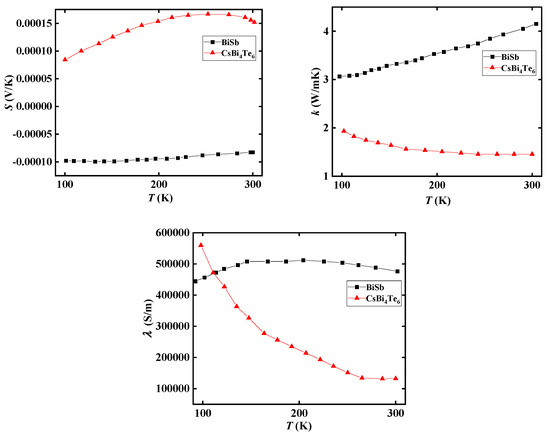 Thermoelectric parameters of Csbi4Te6 and BiSb.