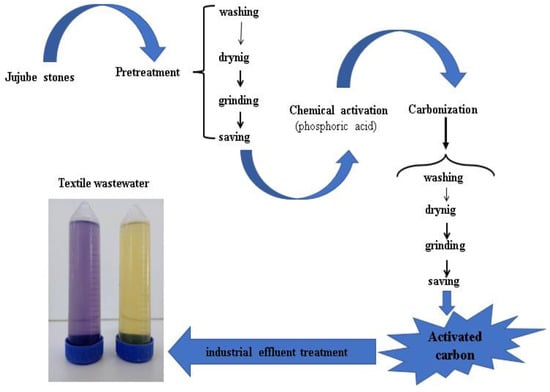 Bouchelkia, N.; Benazouz, K.; Mameri, A.; Belkhiri, L.; Hamri, N.; Belkacemi, H.; Zoukel, A.; Amrane, A.; Aoulmi, F.; Mouni, L. Study and Characterization of H3PO4 Activated Carbons Prepared from Jujube Stones for the Treatment of Industrial Textile Effluents. Processes 2023, 11, 2694. https://doi.org/10.3390/pr11092694