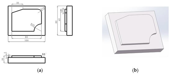 Furthermore, a workpiece with the dimensions 100 × 80 × 22 mm was used for face milling experiments. The material of the workpiece was medium-carbon steel (C45). The part drawings of the final product are shown in Figure 3.