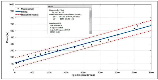 In addition, the spindle rotation power follows an approximately linear relationship with the rotational speed, which can be expressed as []: