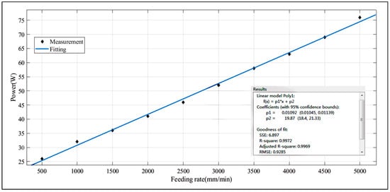Similarly, the feed power follows an approximately linear relationship with the feed rate, which is calculated as []: