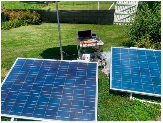 The mathematical model was validated by ongoing research by Abdulwahed Mushabbab et al. [33]. Figure 2 shows the hybrid thermal/photovoltaic system used to validate the mathematical model in the section above. The developed thermal/photovoltaic system model was used to generate a dataset for a 1-year period (8760 h), depending on historical weather data and generated PV power data. The weather data used to simulate the mathematical model were obtained from historical weather data for Tabuk, Saudi Arabia [34]. Additionally, the PV power output for the proposed location was generated through the implementation of the pvlib Python model [35]. The generated data were utilized to train multiple neural networks to predict the influence of nanofluid on cooling a thermal/photovoltaic system. All the simulated parameters were trained in predictive algorithms based on eliminating the highly correlated features within the generated thermal/photovoltaic system dataset. The features used to train the models were cell temperature, PV output power, ambient temperature, wind speed, cloud cover, relative humidity, Reynolds number, inlet temperature to cool the thermal/photovoltaic system, thermal efficiency, and electrical efficiency.