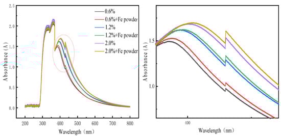 By scanning the wavelength of a UV spectrophotometer, the adsorption capacity of different concentrations of 4DF-4 as a whole agent on iron powder was tested, and the adsorption relationship between 4DF-4 as a foaming agent and metals was evaluated using a standard curve.