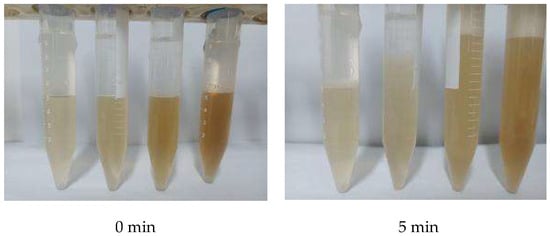 From Table 3, it was found that after the addition of salt, the four types of salts had an adverse effect on the foaming ability of the integrated agent. The negative effect of salt on the foaming ability of the integrated agent may be attributed to the obstruction of electrostatic repulsion between charged bubble surfaces, thereby reducing the foaming ability. However, relatively speaking, the salt resistance of the all-in-one agent was ranked as follows: KCl > NaCl > MgCl2 > CaCl2.