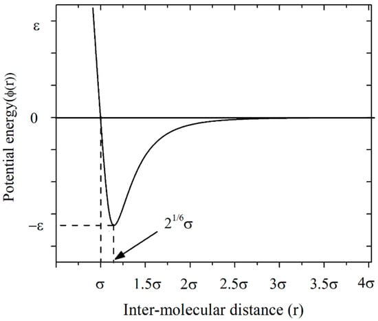 The most commonly used potential is the Lennard–Jones (LJ) 12-6 potential [47] where the molecules are assumed to be symmetric. The LJ potential is defined as follows: