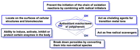 Some of the mechanisms of the antioxidant activity of polyphenolic compounds are listed below (Figure 16).