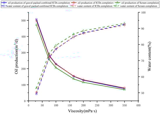 The graphical representation lucidly attests to the conspicuous superiority of water control outcomes within bottom-water reservoirs, as achieved via the fusion of gravel-pack-combined with inflow control devices (ICDs) and conventional ICDs, compared to conventional screen tube completions. Intriguingly, the interplay of escalating oil viscosity manifests as a discernible determinant, precipitating a gradual ascent in water content ratios across distinct completion methodologies. This trend, in turn, coincides with a gradual attenuation in the efficacy of water control endeavors. Notably, the ascent in water content ratios within the domain of gravel-pack-combined ICDs exhibits an accelerated trajectory relative to conventional ICDs. However, an intriguing inflection point emerges as the viscosity of subsurface crude oil surpasses the threshold of 160 mPa.s. At this juncture, the water control performance of gravel-pack-combined ICDs begins to diverge unfavorably from the benchmarks established using conventional ICD completions.