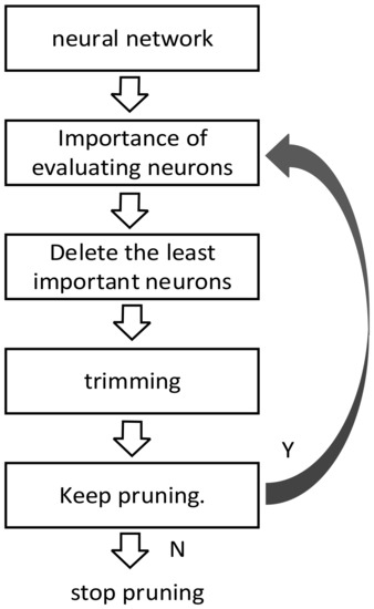 The above equation represents the magnitude of the change in the loss function caused by the removal of a parameter. The computational ordering of this value enables the parameters corresponding to feature maps with relatively flat gradients to be removed. The pruning problem is then transformed into a search for the that minimizes . The error between the results and the samples is represented by the cross-entropy loss function. ACH is the gradient of the error that is passed from the loss function to the layer during backpropagation and is the gradient of the error that is passed from the loss function to the layer during backpropagation.