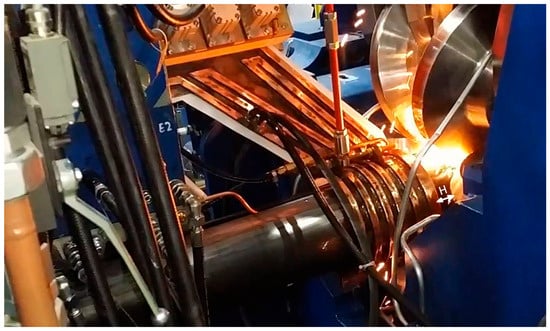 In the case of pipe welding, a current induced along the edges flows to the point of the edge bonding. This makes it possible to heat the metal quickly. Then, the squeeze force pushes all impurities outside the welded surface, resulting in a joint structure like that after forging, instead of the typical casting one, which arises in most welding processes [,,,].