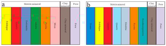 Schematic diagram of rock volume physical model: (a) conventional reservoir rock volume physical model and (b) physical model of rock volume in alkali-bearing shale oil reservoirs.