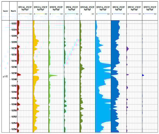 We calculated and combined the mineral inversion results of the four models (Equation (6)) and obtained the final mineral content.