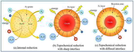 The reduction process of iron ore can be divided into three categories according to its internal layered structure (Figure 7).