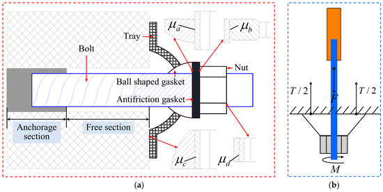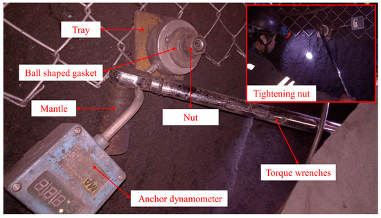 Roadways in soft rock, commonly encountered in coal mining systems, are prone to considerable deformation without adequate bolt support. This challenge is exacerbated in the presence of complex tectonic stresses, which can lead to severe deformation and the potential collapse of these roadways. As a pivotal component in stabilizing the rock surrounding these roadways, bolts are instrumental in preventing rock dilation and deformation. They enable the rock and bolts to share loads synchronously, enhancing stress distribution within the rock mass. Thus, applying an appropriate pre-tightening force to the bolts is crucial for maintaining stratum stability [1,2,3]. As shown in Figure 1, in field engineering, the pre-tightening force is typically applied by tightening the nut [4,5]. However, in many coal mines, the conversion of pre-tightening torque to force is often compromised by friction between support units and other factors, resulting in a significantly lower actual pre-tightening force than the intended value. This discrepancy leads to substantial deformation of the surrounding rock in the initial stages of roadway support. The traditional approach to address this issue involves replacing failed bolts with new ones. While this method curtails further deformation, it also escalates support costs [6]. Therefore, investigating the loss behavior of the pre-tightening force in bolts and developing corresponding remediation techniques is vital. This research aims to guide roadway support construction to enhance roadway stability.