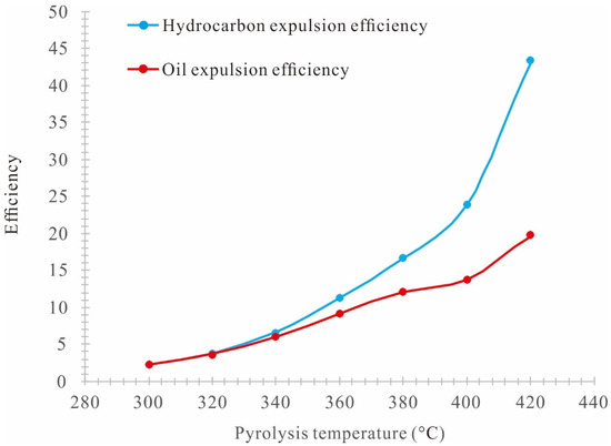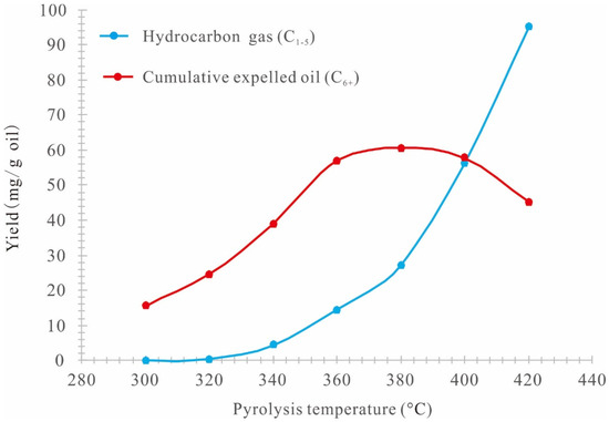 - 320–360 °C (0.57%Ro–0.79%Ro) stage is the rapid hydrocarbon generation stage, when the expelled oil rate increases rapidly, the residual oil rate decreases rapidly, and the generation rate of gaseous hydrocarbons (C1–5) increases rapidly as well.