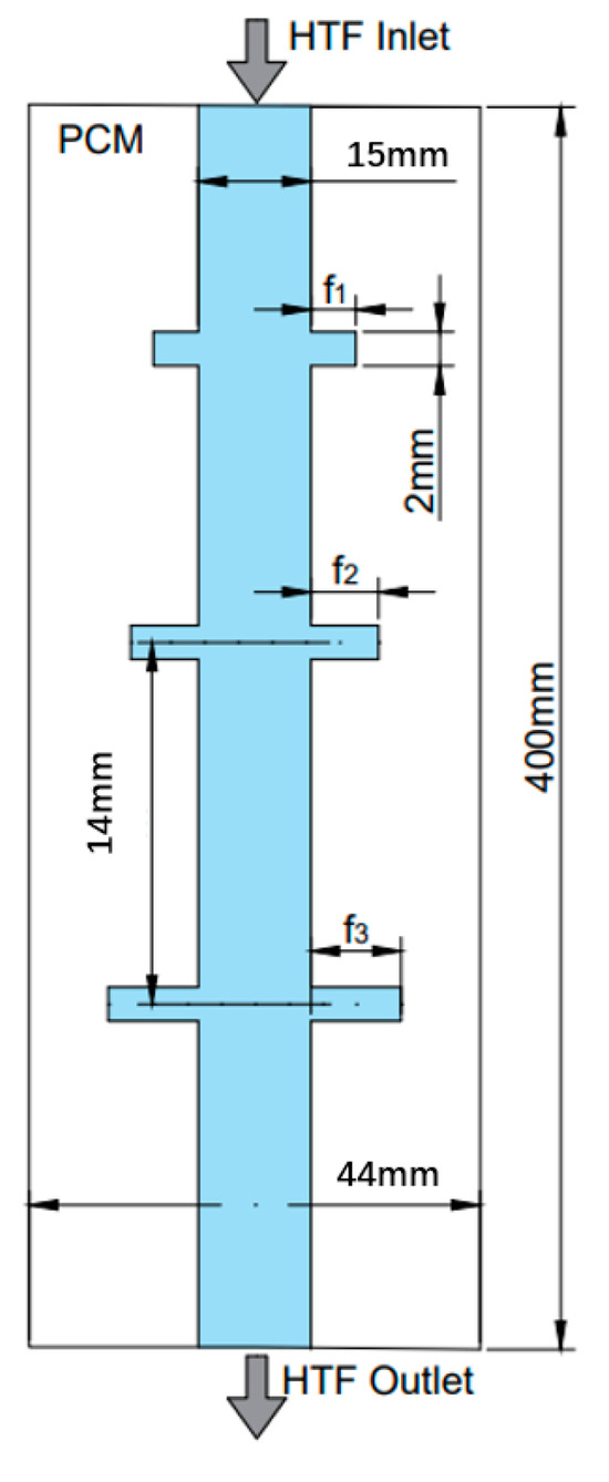 - Li, H.; Hu, C.; He, Y.; Tang, D.; Wang, K.; Huang, W. Effect of perforated fins on the heat-transfer performance of vertical shell-and-tube latent heat energy storage unit. J. Energy Storage 2021, 39, 102647. [Google Scholar] [CrossRef]