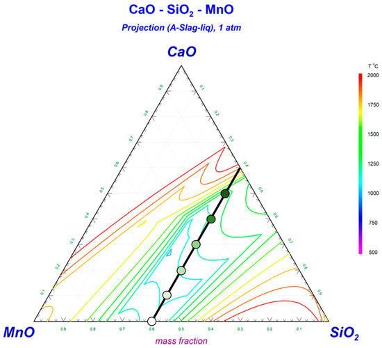 - While maintaining a constant SiO2 content, gradual variations were introduced in the concentrations of MnO and CaO. The gradual changes in MnO and CaO concentrations would influence the activities of MnO and SiO2. Hence, these modifications were expected to induce alterations in the elemental transfer behavior of O, Si, and Mn.
