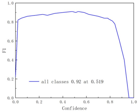 F1 represents the harmonic mean of P and R. As shown in Figure 28, the F1Score reaches a maximum of 0.92 when the confidence level is 0.519, indicating that the precision and recall of the model can reach the overall optimal value under this confidence level. In this case, the comprehensive performance of the model is the best.
