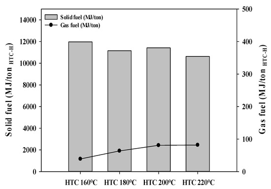Calculation results of bioenergy of HTC-S and HTC-L according to hydrothermal carbonization reaction temperature.